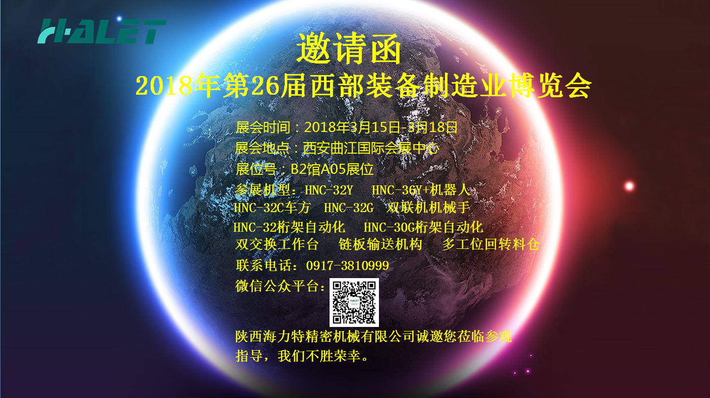 | 第二十六屆西部裝備制造業博覽會3月15日——3月18日在西安曲江國際會展中心隆重召開。此次展會陜西海力特精密機械有限公司將攜HNC-32Y,HNC-36Y精密車銑復合機床,HNC-32G HNC-32C車方 雙聯自動化機床,HNC-30G精密排刀車床,HNC-500Z桁架機…… |