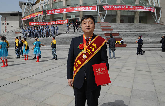 2014年集團董事長榮獲五一勞動獎章,在寶雞市工人文化宮外留影紀念!